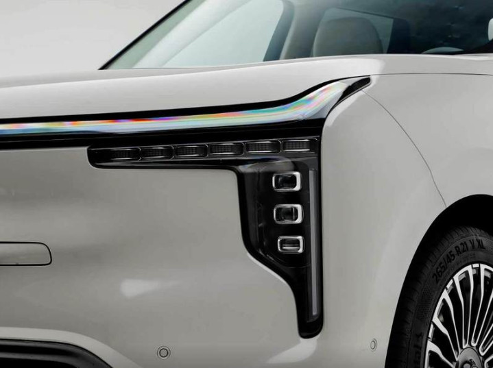 智己LS8拥有与大哥LS9相近的外观设计,前脸采用封闭式,车头上方有贯穿式LED灯带,两侧是竖向主灯灯组,转向灯与主灯呈“7”字型排列。车尾有家族式尾灯灯组,贯穿式效果,中央还有灯语屏,辨识度极高。